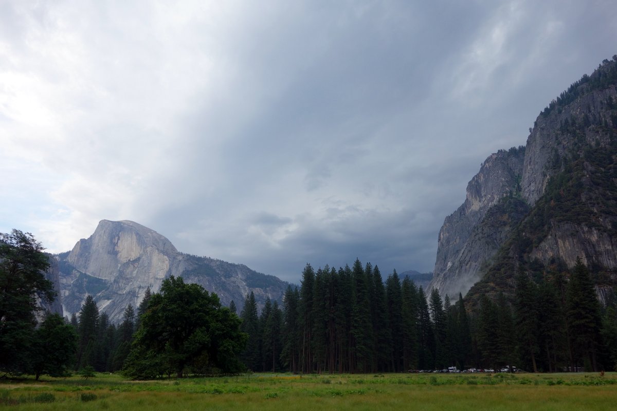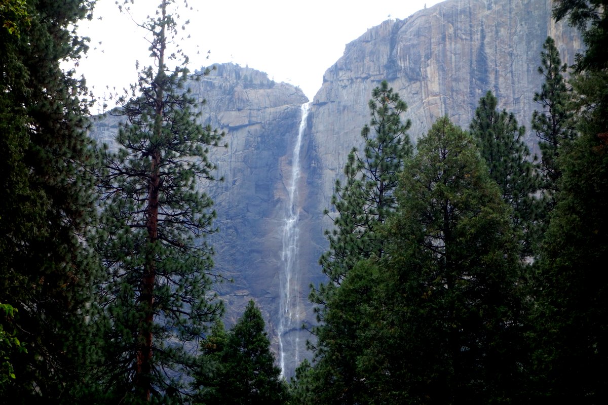Говорят, что бывает, к концу лета водопады пересыхают целиком. Но нам повезло, на первый же день нашего превывания в Йосемити, на парк обрушились ливни, и водопады немного раскочегарились.