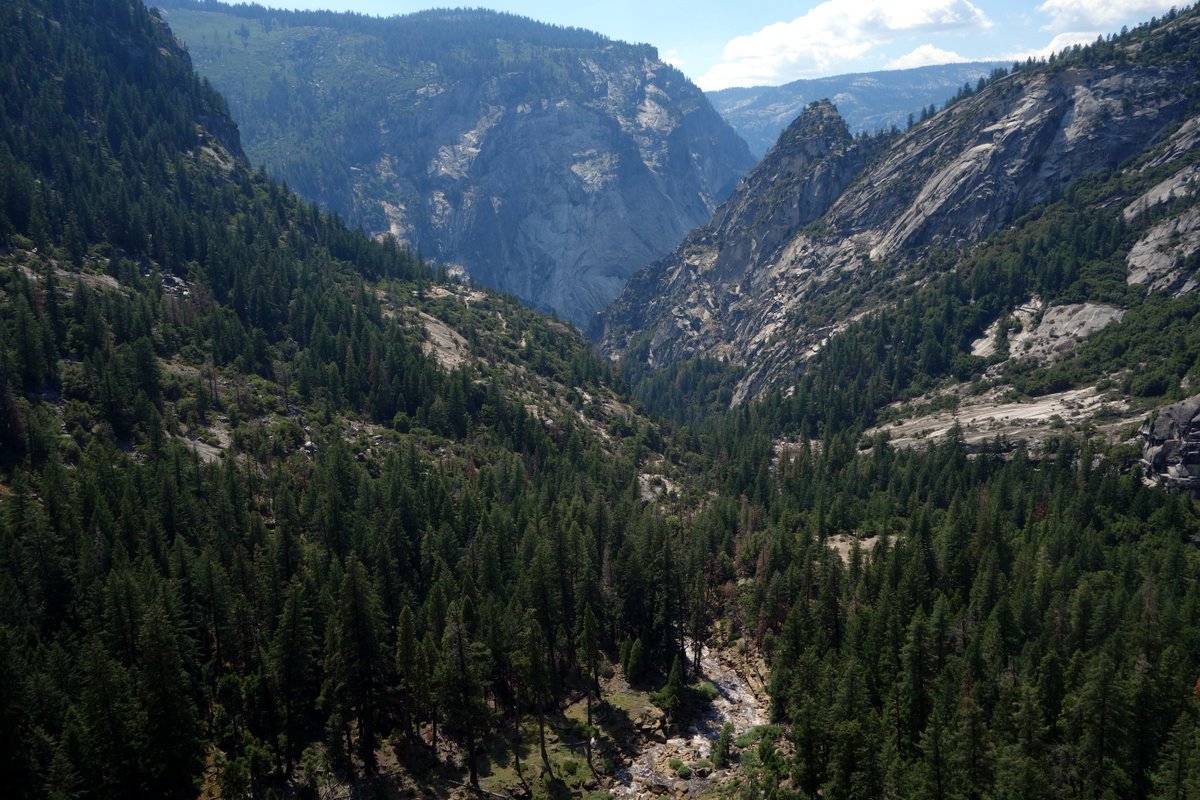 Нам же повезло меньше - мы приехали уже в разгар лета, да и вообще в Калифорнии засуха. Верхний сегмент Йосемити нам предстал достаточно жалким зрелищем:
