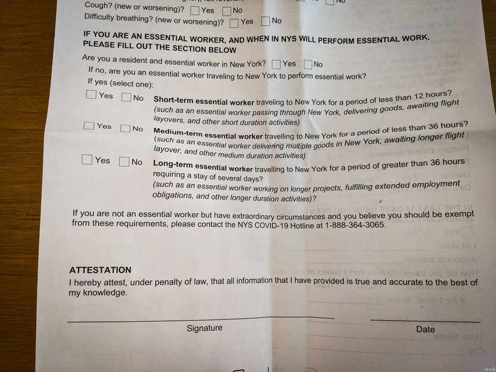 Чтобы регистрировать приезжих, Нью Йорк создал анкету, которую их просят заполнить. Не уверен, в какой момент её подсовывают водителям приезжающим на машине, но в случае с аэропортом ситуация выглядела вот как: