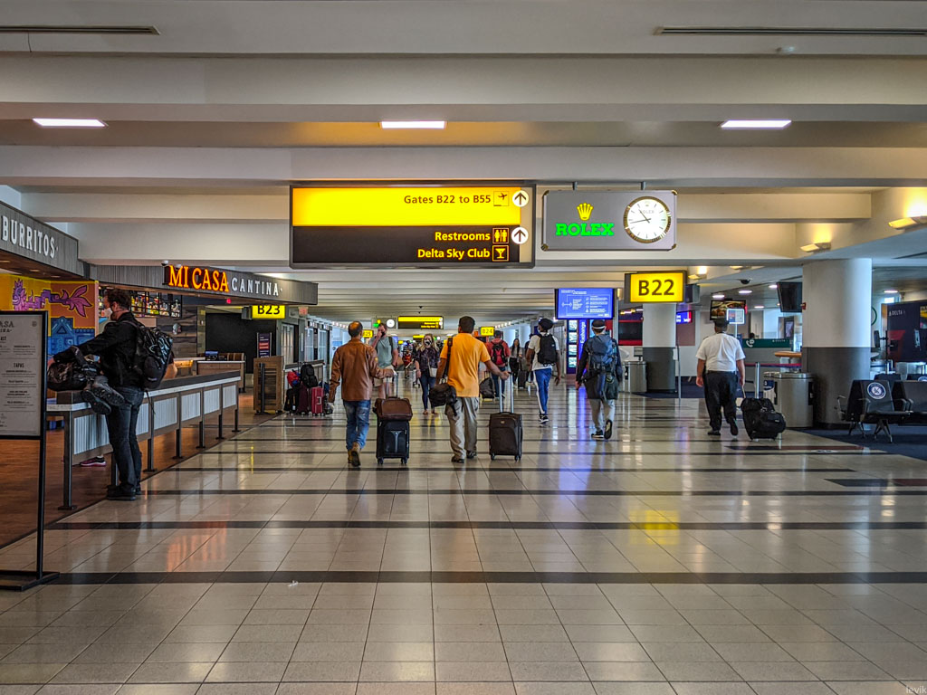 Наш самолёт подрулил к терминалу, народ начал выходить по телетрапу, а сразу после входа в здание стояло несколько сотрудников какой-то службы штата, и раздавали людям эти самые анкеты.