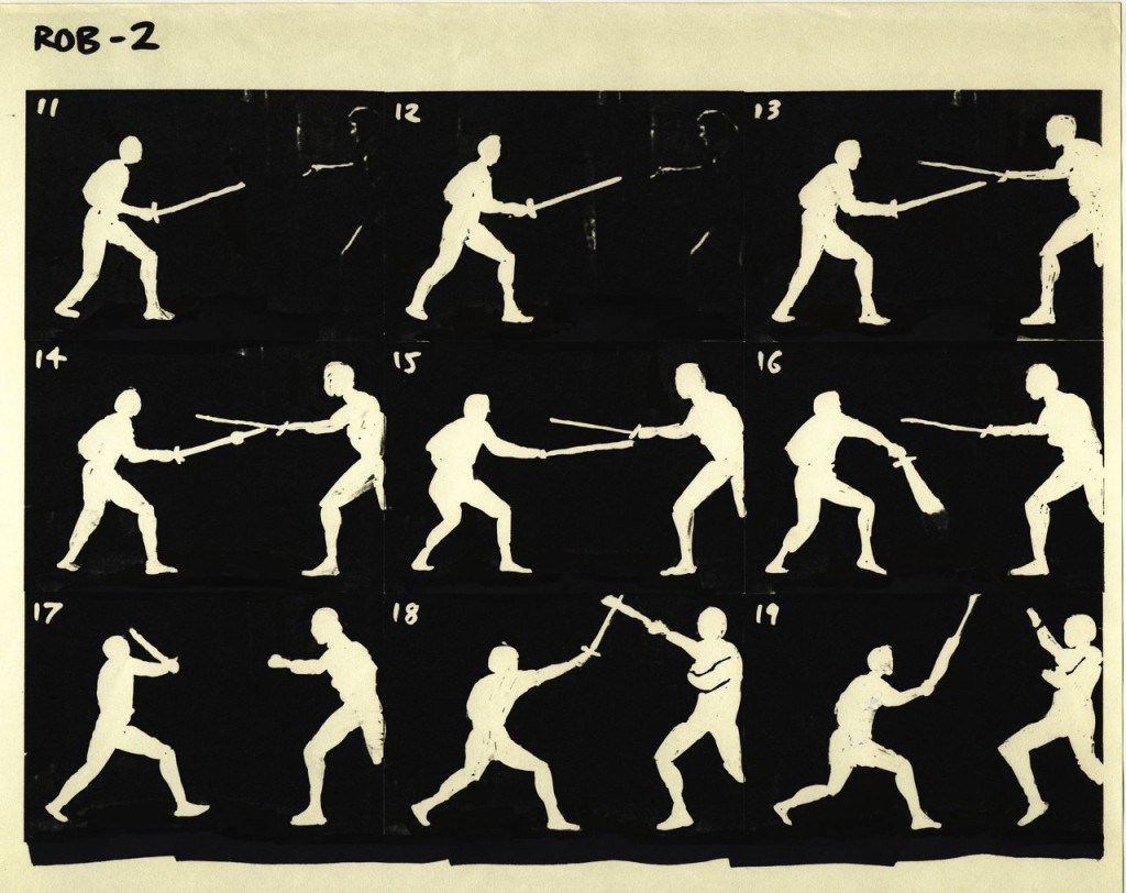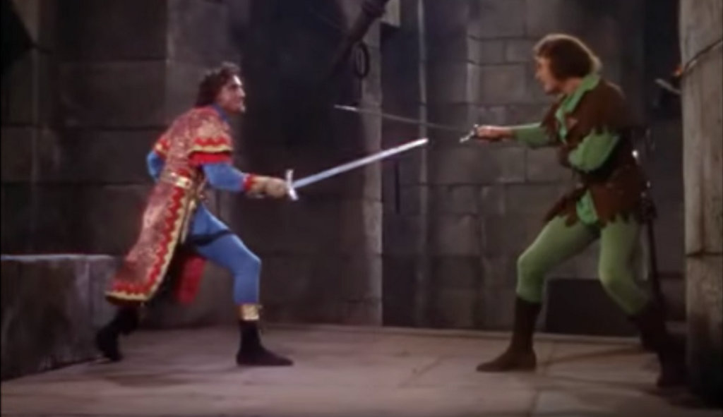 Джордан нашёл то что ему требовалось в старом фильме Приключения Робин Гуда 1938 года. В нём, ближе к концу есть сцена, в которой герой сражается на мечах с главным злодеем. В ней Мекнер нашёл шестисекундный отрывок, когда противники, снятые как раз с нужного ракурса, обменивались ударами: