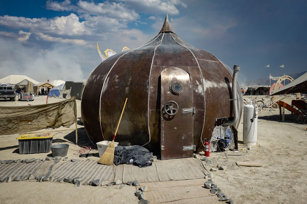 4. Знаете, что это такое? Это русская баня! Ребята из Москвы приезжают с этим проектом, и устраивают прямо на фестивале каждый день несколько "банных церемоний" - с вениками и всеми делами. Вам может показаться, что баня на жаре - не лучшая затея. Но это очень ошибочное мнение. Потому что, после бани жара невадской пустыни кажется свежей прохладой!