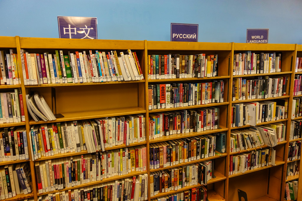 10. Так как НЙ - город многонациональный, тут есть книги на многих языках. Вот например полки китайской и русскоязычной литературы. (На всякий случай, это не Брайтон Бич - это всё ещё в отделении в Манхэттене.)