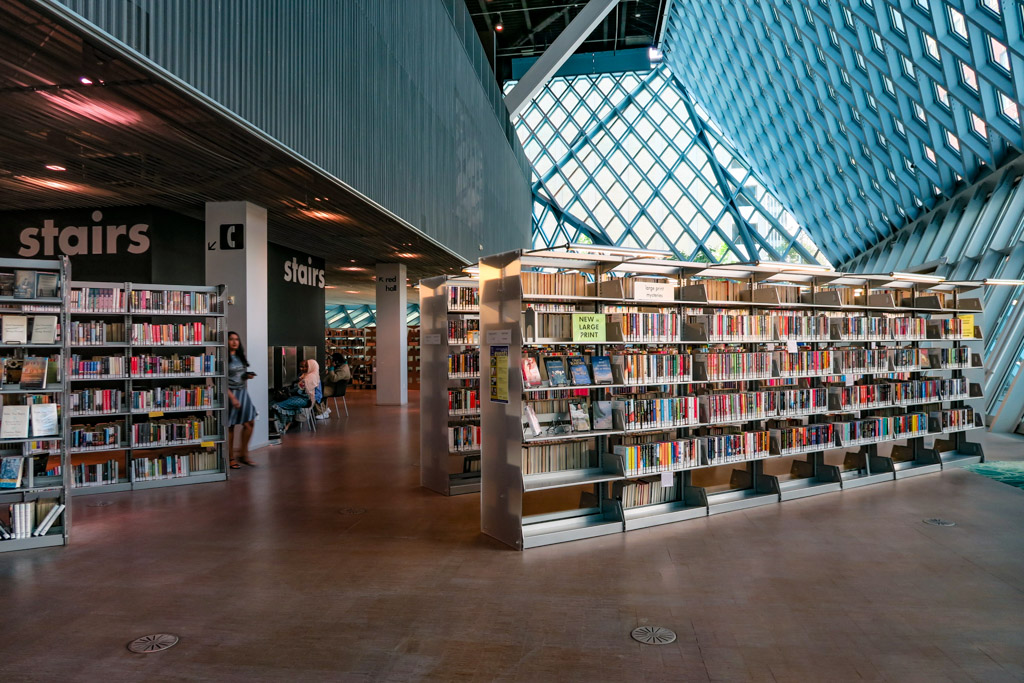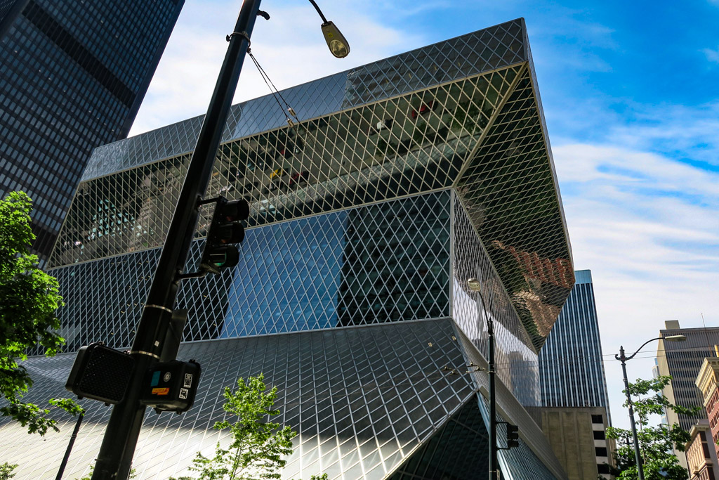 12. Вот центральная библиотека Сиэтла. Это современное здание построили в 2004 году, и местные всегда перечисляют его среди главных достопримечательностей города. Вообще в библиотеке Сиэтла 27 отделений, и примерно вдвое меньше книг, чем в бруклинской.