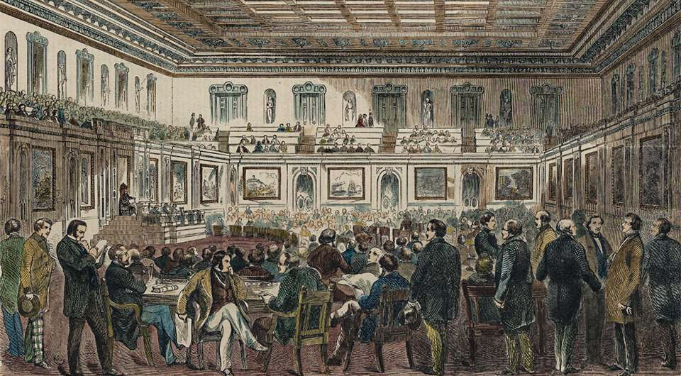 А во-вторых, в 1843 году Конгресс выделил Сэмюэлю Морзе средства на разработку электрического телеграфа. К маю 1844 между Вашингтоном и Балтимором (около 60км) была проложена первая телеграфная линия в США. В качестве демонстрации, отправили телеграму, извещающую Конгресс о результатах съезда Партии Вигов.
