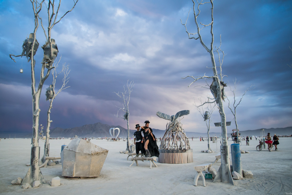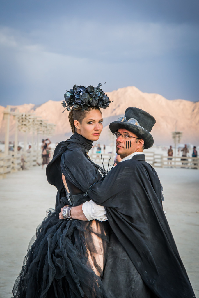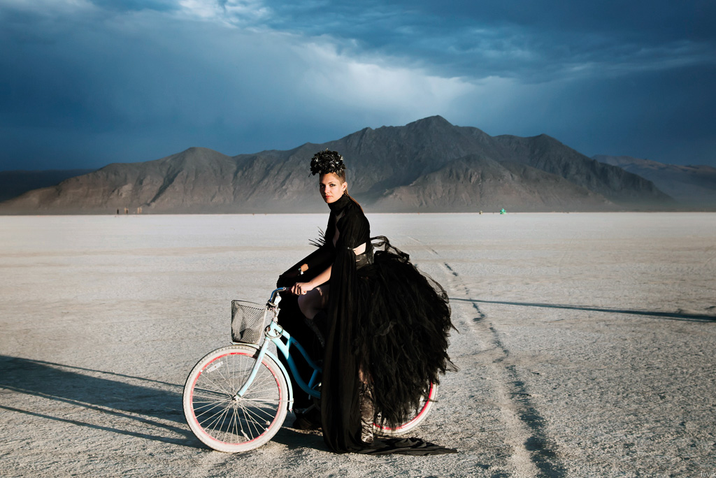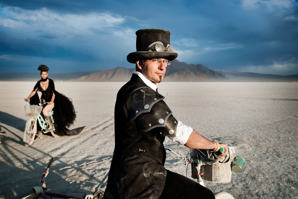 1. Напомню, что нам очень повезло с Диной, отличным фотографом, которая не просто сняла наш праздник, но и устроила для нас отдельную вылазку по пустыне (на велосипедах, разумеется) в красивый предзакатный час, чтоб пофотографировать нас на фоне разных Бёрнинг-мэновских штук.