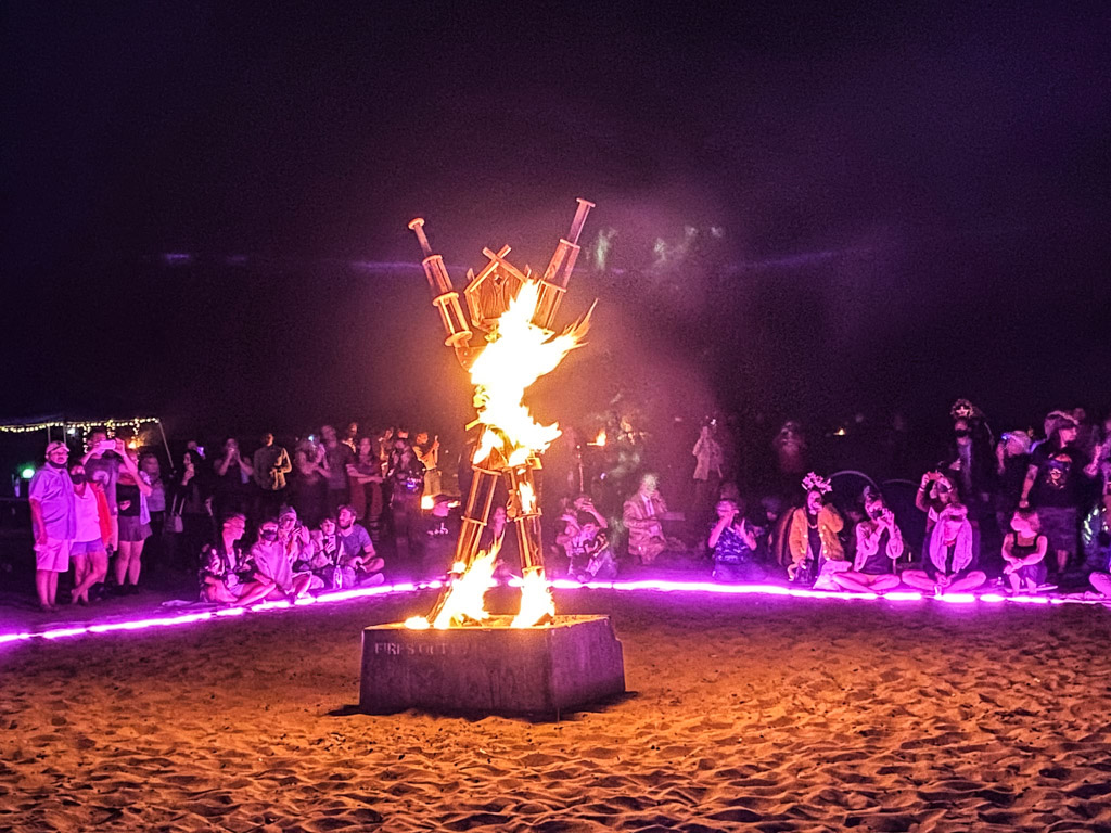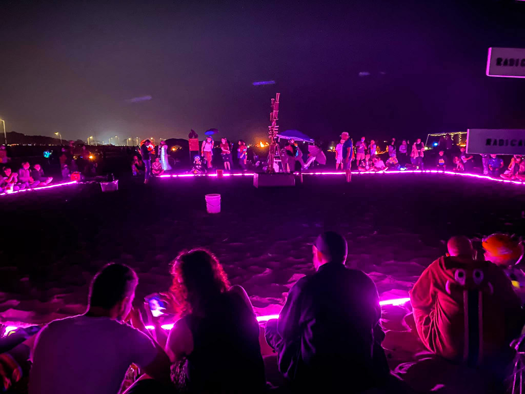 4. К вечеру на плаже собралась неплохая тусовка - кто-то даже приехал на подсвеченных велосипедах (все знают, как важна подсветка для ночного передвижения по фестивалю!)