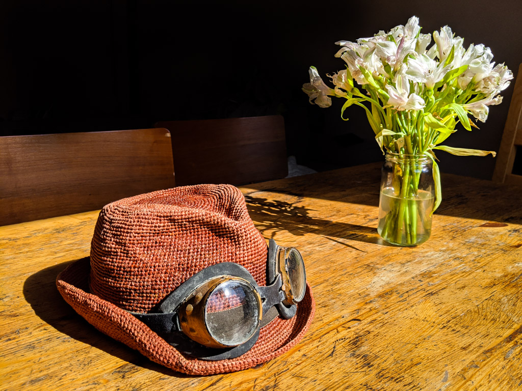 18. Ну а сам я в этом году отпраздновал скромно: Нацепил на японскую шляпу свои защитные очки. Те, кто в теме всё поймут.