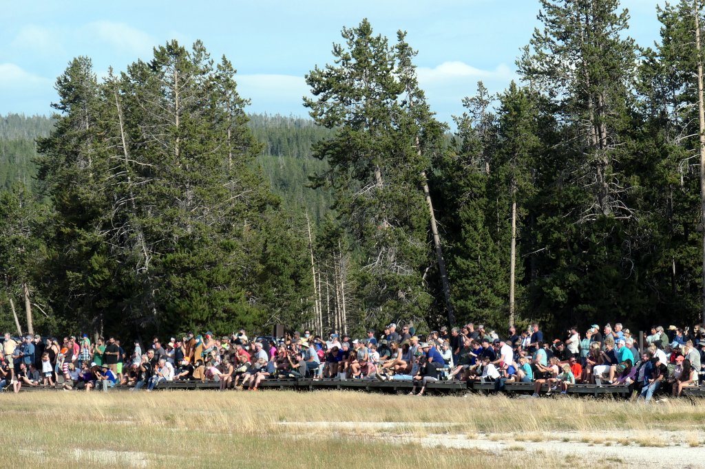 Несмотря на то, что одну из самых зрелищных штук в парке я прошляпил, с этим гейзером у нас всё получилось как надо - мы забронировали гостиницу, где Служаку видно было прямо из окна (это было недёшево!) А значит, можно было выйти пораньше, и посмотреть на извержение до того, как подтянулись толпы туристов.