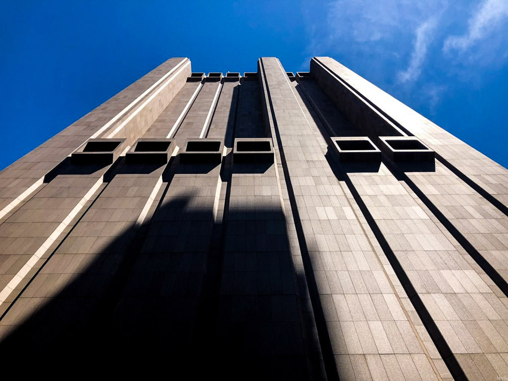 Прогуливались мы вчера вечером с друзьями по городу, и как-то внезапно, свернув за угол столкнулись лицом к лицу с небоскрёбом, похожим на какую-то твердыню тёмных сил, из очередного фэнтезийного фильма. Посудите сами, как бы вы отреагировали, если бы вдруг вечером очутились через дорогу от такого: