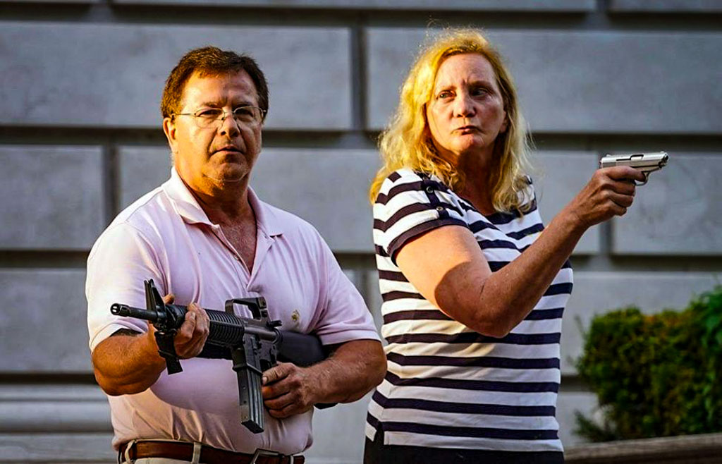 Была знаменитая фотография двух адвокатов в из Сент-Луиса, которые якобы охранялись от демонстрантов с оружием, но если разобраться в той истории, не очевидно, что их собственности что-либо угрожало. Там демонстранты свернули на частную улицу, в попытке пройти на место встречи, но на территорию дома, который принадлежал тем адвокатам, никто не заходил.