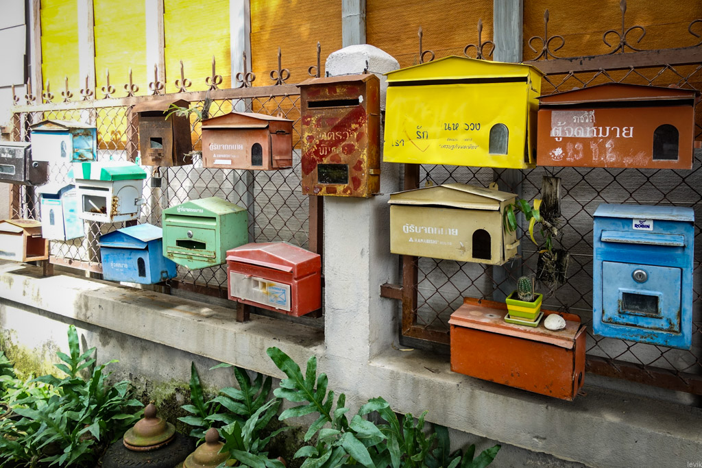 Во многих странах почтовые ящики могут быть абсолютно любыми по форме и размеру. Вот, к примеру, стена ящиков где-то в Таиланде - смотрите, сколько разнообразия!
