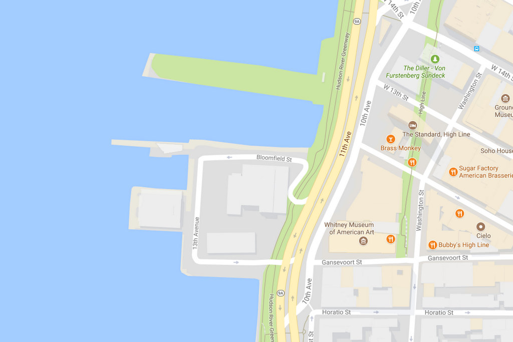 2. Однако, если бы вы в 2017 году посмотрели на карту западного берега Манхэттена, то увидеть бы там выпирающий в реку квадратик земли, по кромке которого идёт загадочная 13я Авеню!