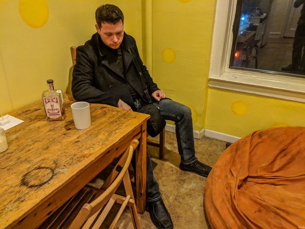 5. Накануне переезда к нам зашёл Макатун, последний раз выпить на потёртым деревянным столом на жёлтой кухне в горошек. С этой кухней у многих наших друзей связано большое количество воспоминаний - много посиделок, разговоров за жизнь, пьянок и не только. Короче, было немного грустно - конец целой эпохи.