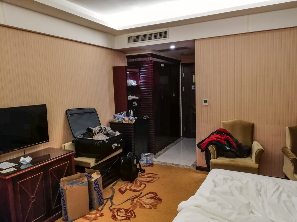 В отеле нас расселили по номерам, где предстоит провести две недели карантина. И тут у меня случился самый большой облом. Мне досталась комната без окон! Т.е. в комнате вообще нет окон и мне тут нужно пробыть две недели. И еще в комнате было сильно накурено, а окна что бы проветрить ведь нет. Я, конечно, стал возмущаться, но из комнаты мне самому выходить нельзя, все таки карантин. После моих долгих жалоб через Вичат администрация этого карантинного отеля пообещала что через неделю переселить меня в комнату с окном, но это все равно очень долго.