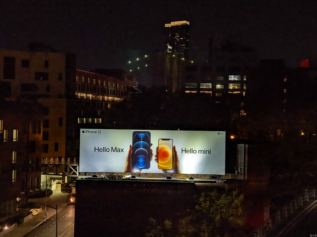 14. Кстати, о телефонах: там совсем рядом висит рекламный щит, который уже больше десяти лет рекламирует только продукцию Apple. Всегда говорю, что по фотографии легко определить, в каком году сделан кадр. Вот сейчас на нём 12е Айфоны.