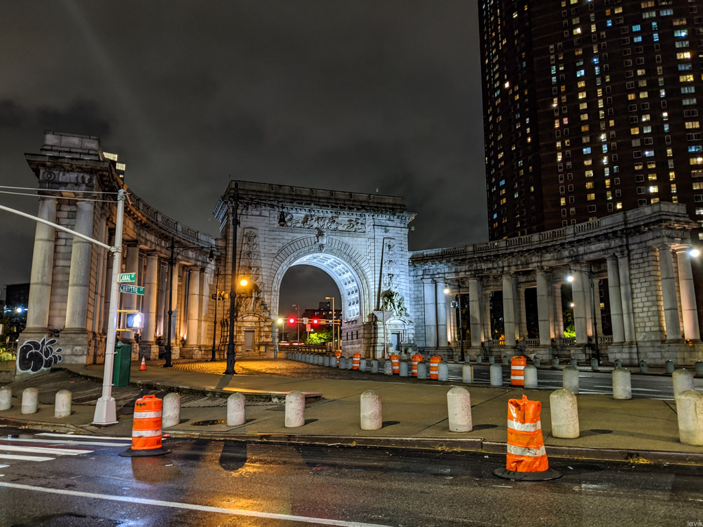 12. А вот так выглядит въезд на Манхэттенский мост со стороны Манхэттена. Очень помпезная колонада, увенчанная триумфальной аркой. Любили же они тогда строить богато!