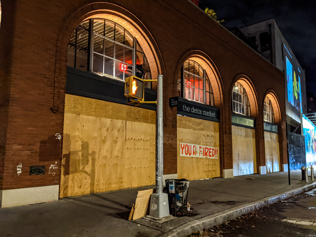 9. Манхэттен. В некоторых районах, опасаясь новых беспорядков заколотили окна фанерой. Это конечно не здорово, что беспорядки ожидали только в случае победы Трампа. Не поддерживаю такое (и нет, я не за это голосовал).