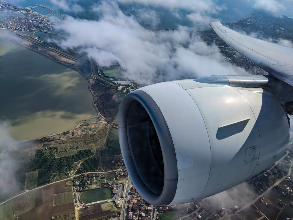 19. Ох, как я скучал по этому виду! Кстати, вот такие фотографии, где двигатель виден спереди, можно делать только из носовой части самолёта. Это ещё одно преимущество бизнес-класса. Вы когда в инстаграмах и фейсбуках инфлюэнсеров видите похожие ракурсы, знайте: этот человек понимает толк в авиапутешествиях, скорее всего летит бизнесом - а то и круче!
