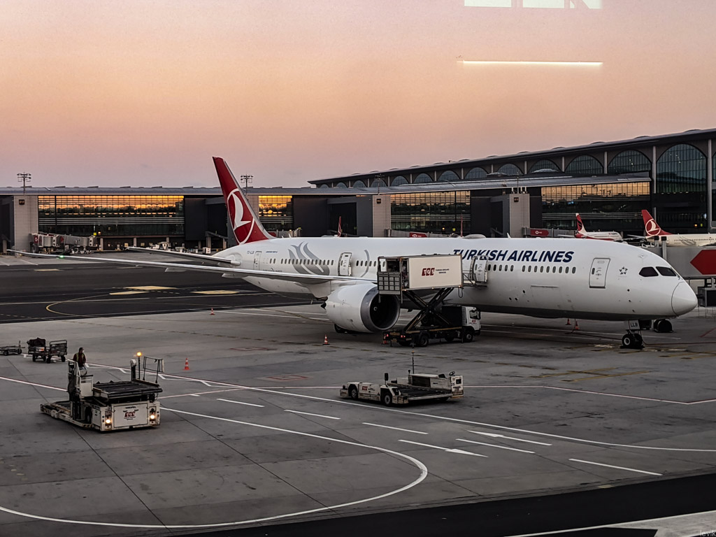 31. В обратном направлении я должен был лететь другим самолётом Turkish Airlines, Боинг 787, известный как Дримлайнер поновей, и авиакомпания совсем по-другому обустроила там салон бизнес-класса.