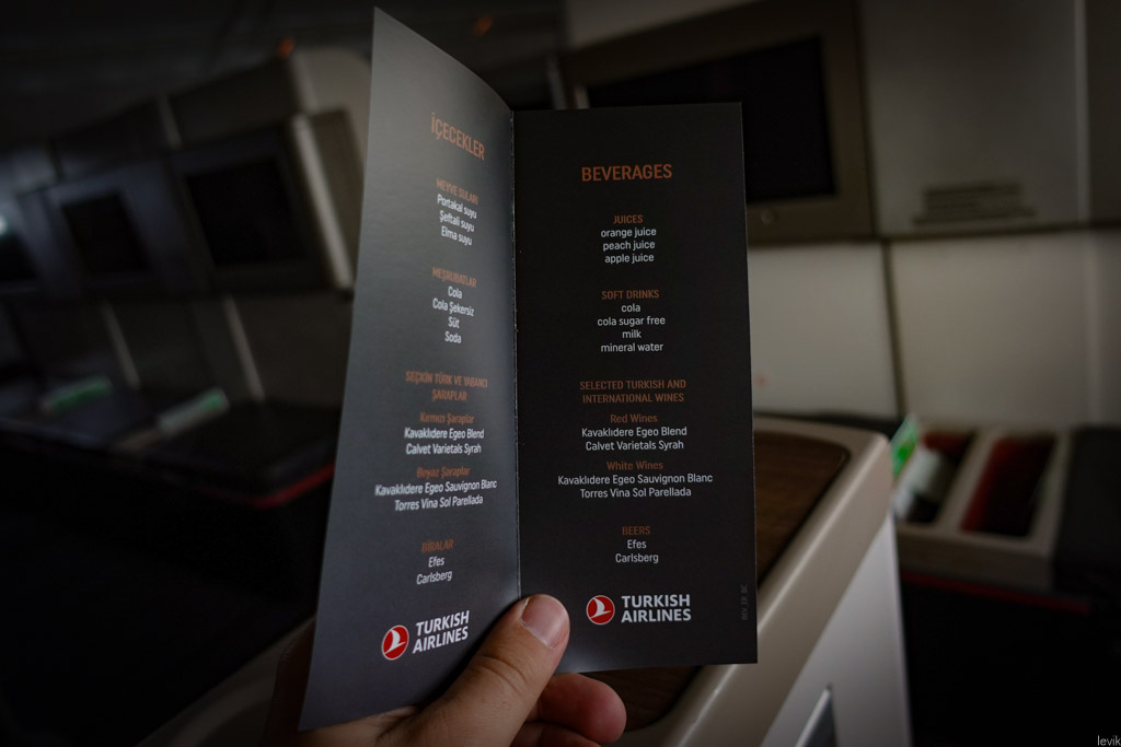23. Бортпроводник раздал пассажирам бизнес-класса меню. В нём были только напитки, причём список был крайне ограничен: три вида соков, кола, ненавистная для авиа-экипажей кола без сахара, газировка, и, почему-то молоко. А ещё, по два наименования красного, белого и пива. Я так понимаю, всё это приносится в индивидуальной упаковке. Заметно отсутствие любых горячих напитков: кофе, чай, и т.д.