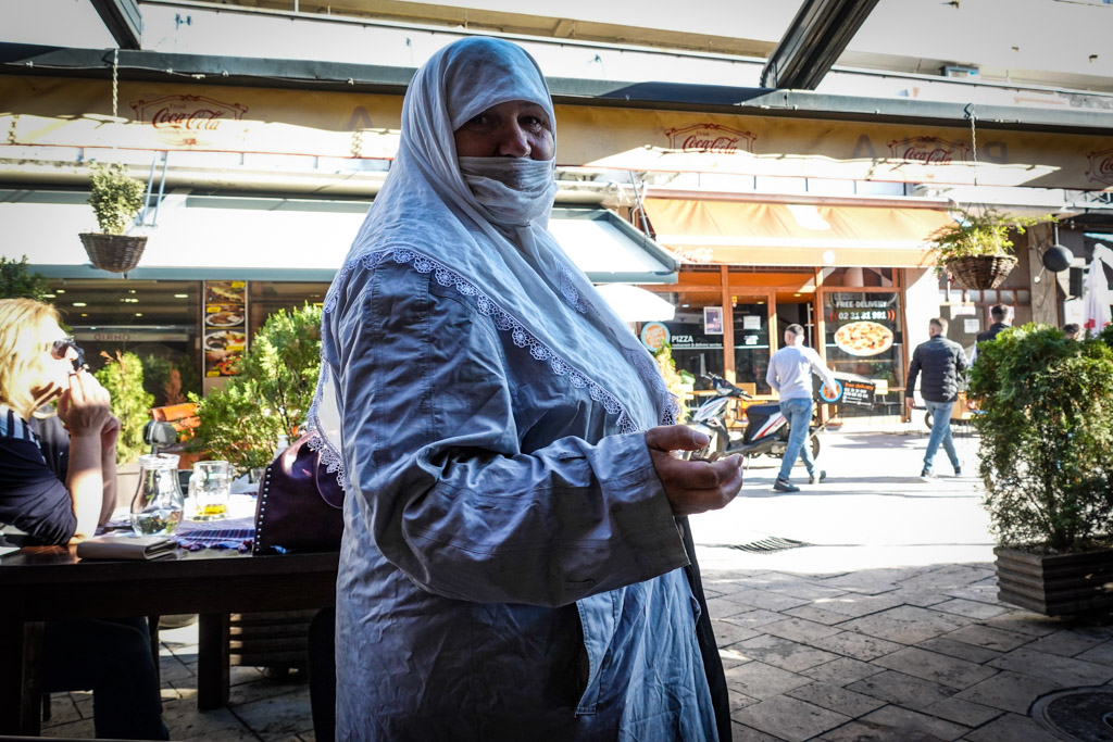 13. Большинство женщин на улице или туристы (возможно - внутренние), или вот такие бабушки-попрошайки. Интересно, у неё лицо закрыто из-за коронавируса или из-за религии? Вообще, как вы могли заметить, маски тут носить не принято.