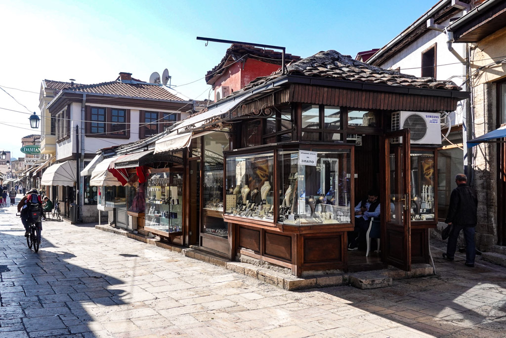 4. Впрочем, торговые лавки тут до сих пор есть. Это как правило ювелирка для доверчивых туристов. Мне рассказали, что большинство магазинов и кафе в этом районе принадлежит мусульманскому меньшинству Северной Македонии - албанцам.