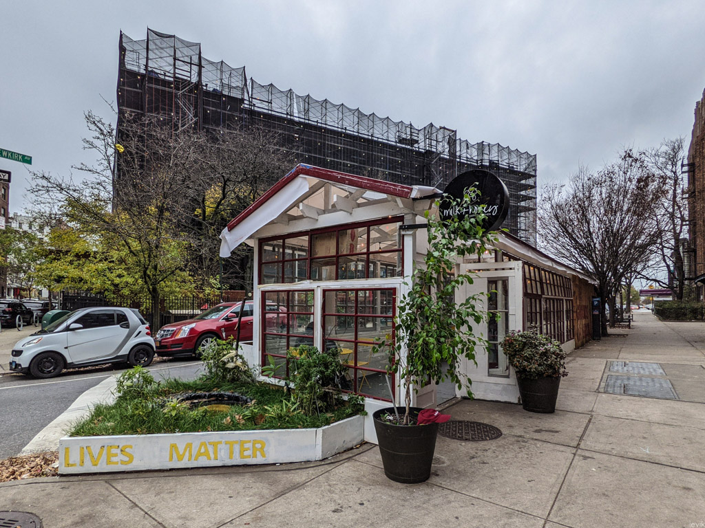 Вторая проблема НЙ - здесь не так много улиц с широкими тротуарами, не особо то и есть куда ставить летние веранды. Но "коммерческие" улицы всё же попадаются, и вот недалеко от моего дома есть одна такая. Большинство из фотографий в этом посте - рестораны вдоль неё, в пределах 10-минут ходьбы то моей квартиры.