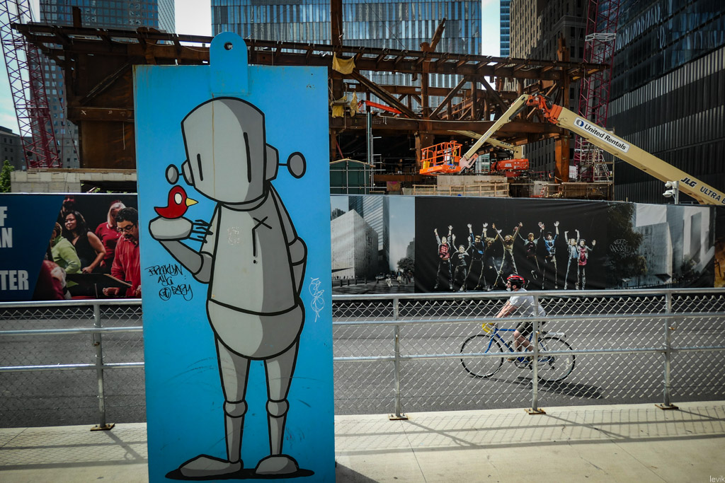 9. Добрый робот с птичкой, прямо напротив Окулуса и башни Всемирного Торгового Центра.