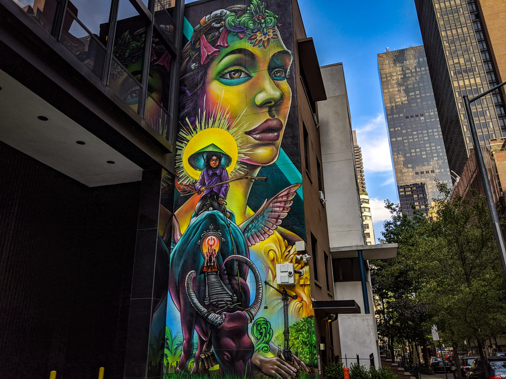 7. Ещё одна. Это художник Kobra, он много таких крупных стен разрисовал. Это вид с Хайлайна.