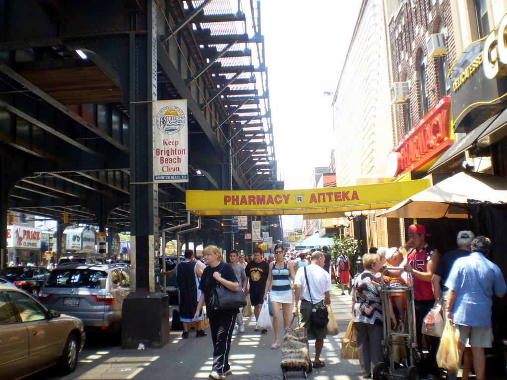 Участок Брайтон Бич Авеню, над которым идёт метро - чуть больше 500 метров. Мы с папой медленно шли по улице, изучая пёстрые витрины, и, один за другим, поедая купленные бананы. За время этой первой короткой прогулки мы наверное остановились пополнить запасы бананов два или три раза.