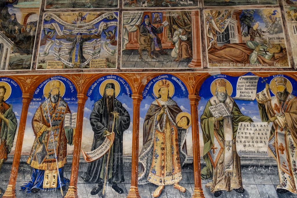13. Фрески внутри церкви - вроде как они избежали огня в 2009. Интересно, почему и изображённых святых пустые лица?