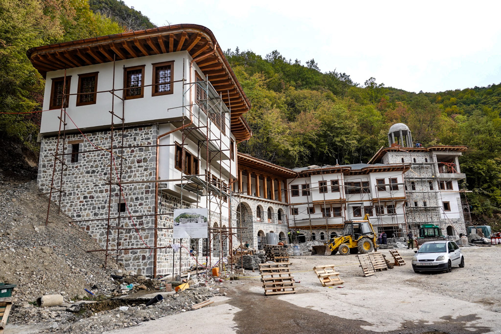 И всё бы ничего, но в 2009 году в монастыре случился пожар, который уничтожил все старые построения - целыми остались лишь новые здания, и церковь. Но уже в 2010 году начались работы по восстановлению исторического наследия, с целью восстановить всё максимально близким к оригиналу. Так что, большинство строений в этом тысячелетнем монастыре были построены меньше 10 лет назад.
