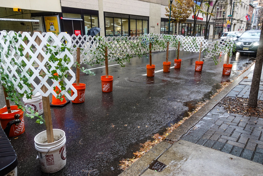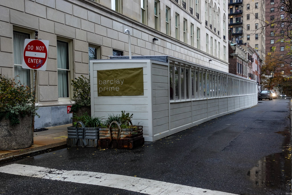 8. Того же нельзя сказать про более традиционные рестораны Филадельфии. В городе сейчас резкий рост больных коронавирусом, и власти как раз незадолго до моего визита запретили посетителям есть внутри заведений. К счастью для них, многие уже успели построить внушительные "летние веранды на свежем воздухе". Непонятно, чем такой сарайчик принципиально отличается от обыкновенного внутреннего помещения. Впрочем, у нас в НЙ примерно так же делают.