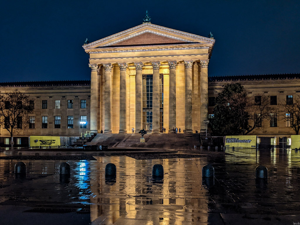 29. Вечерело. Всё же декабрь на дворе, и темнеет довольно рано. Яша повёл меня к Художественному музею Филадельфии, пожалуй всемирно знаменитому в основном благодаря кино-боксёру Рокки, который любил взбегать по его ступеням.