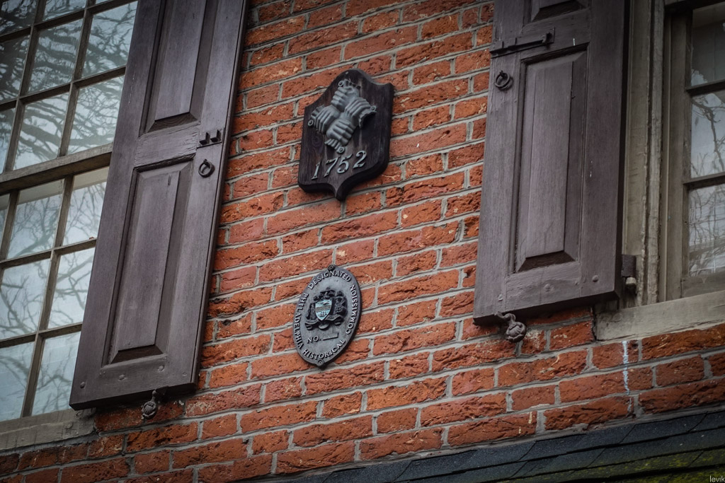 27. А ещё на старых зданиях висят вот такие значки: Что такое 1752? Неужели год строения? Выходит этому домику уже почти 230лет? Ниже - официальный герб Исторической Комиссии Филадельфии. Этот дом внесён в реестр под номером 665.