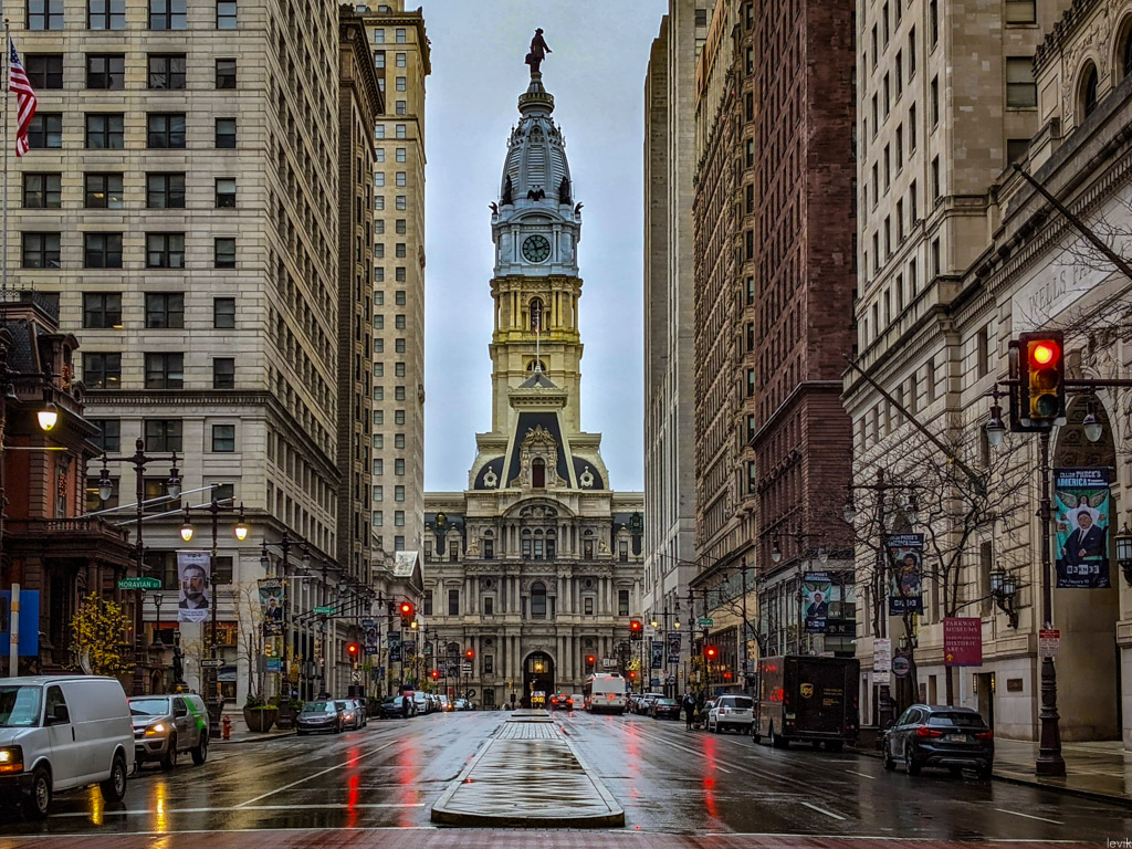 На протяжении более 90 лет (1894 - 1985) негласным правилом города был запрет на строительство зданий выше шляпы скульптуры Пенна (167 метров). Это было нарушено лишь в 1986, со строительством нового стекляшки-бизнес-центра Liberty Place, который изрядно превысил ратушу. (Это две остроконечные башни справа на заглавной фотографии.)