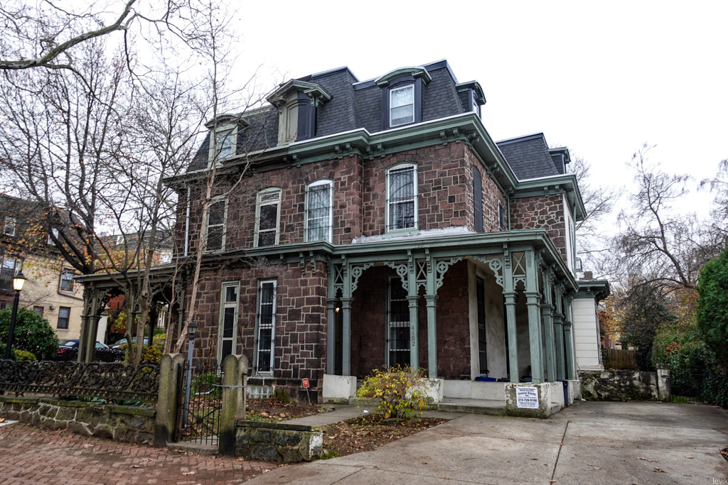 3. Мы с Яшей начали прогулку в одном из уютных районов Западной Филадельфии (это часть города, на западном берегу реки Скулкилл). Здесь тихие зелёные улицы, и много частных домиков-особняков.