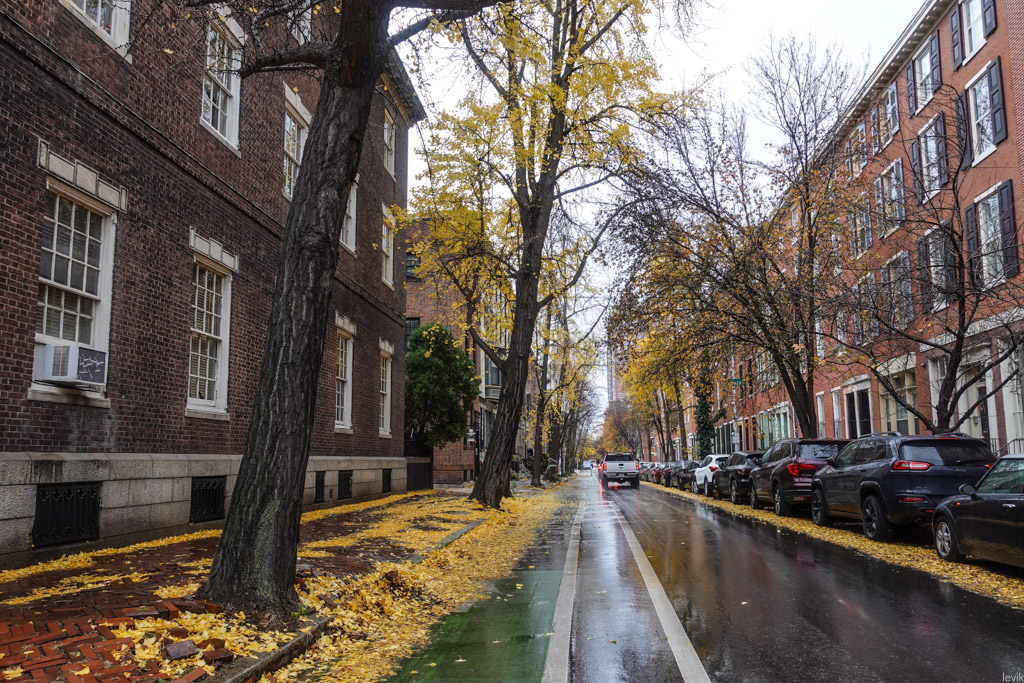 22. Самая приятная часть Филадельфии - определённо старый город. Это узкие улицы, обрамлённые деревьями Гингко, и старыми кирпичными домами. С гингко мне вообще очень повезло!