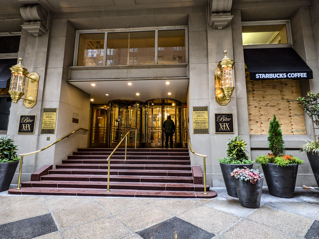 10. Филадельфия - город контрастов: В здании роскошного отеля Беллвью есть Старбакс. Прямо рядом с парадным входом. Правда, его пришлось закрыть фанерой - насколько я понял это из-за протестов и беспорядков, которые прошли в недавно городе после очередного убитого полицией афроамериканца.