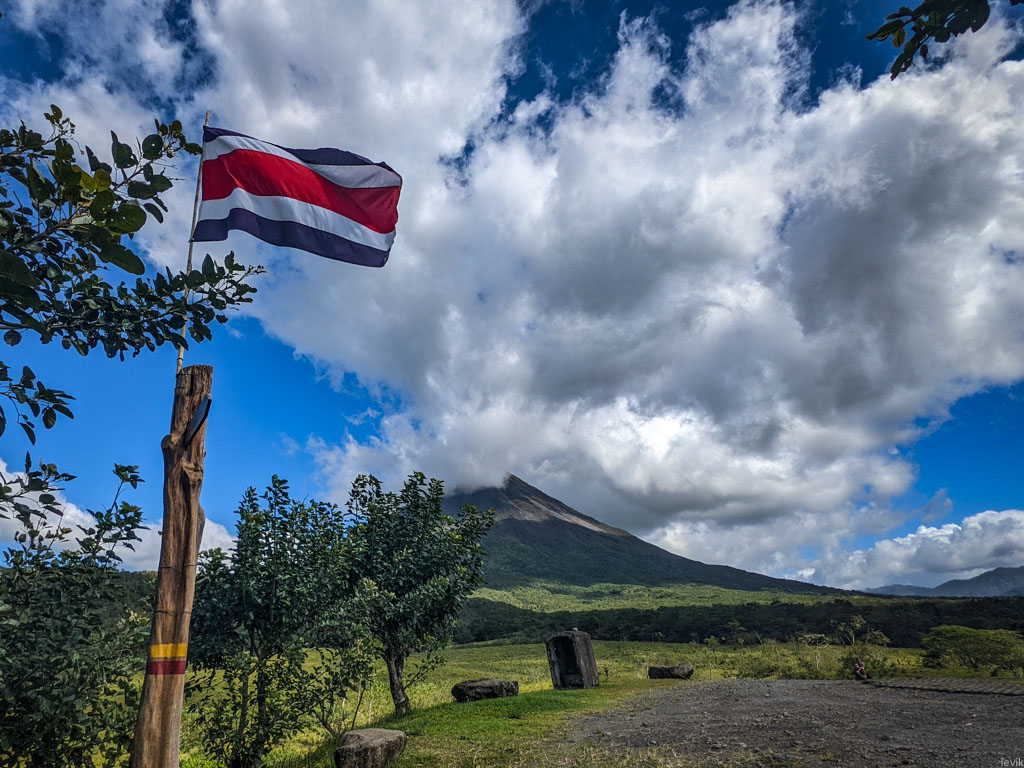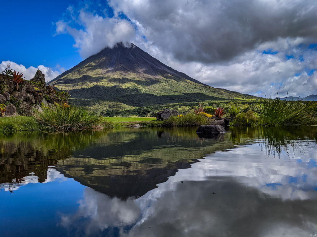 8. На несколько дней мы остановились недалеко от вулкана Аренал. Он невысок (всего около 1650м), но имеет красивую правильную форму. Его вершина почти всегда скрыта за облаками, но нам пару раз повезло её увидет.