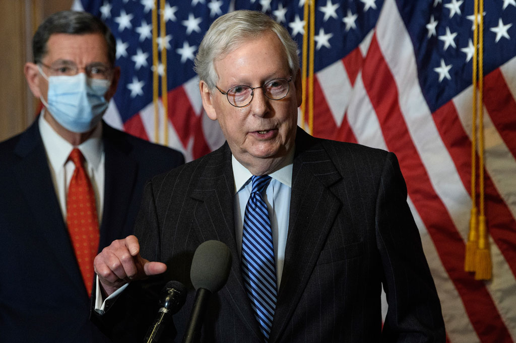 "Мы обязательно проголосуем на этот счёт немного позже, вместе с другими мерами, которые просил принять президент," заявил Макконнелл. При этом, "другие меры" - это усиление надзора над выборами, и изменение легального статуса компаний, владеющих соцсетями - крупные и сложные изменения, которые бесспорно потребуют горячих дискуссий и торгов. Это довольно изящная оговорка, чтоб не говорить "нет" прямо. Макконнелл понимает, что если собрать все три предложения в один законопроект, то никакого шанса пройти у него не будет.