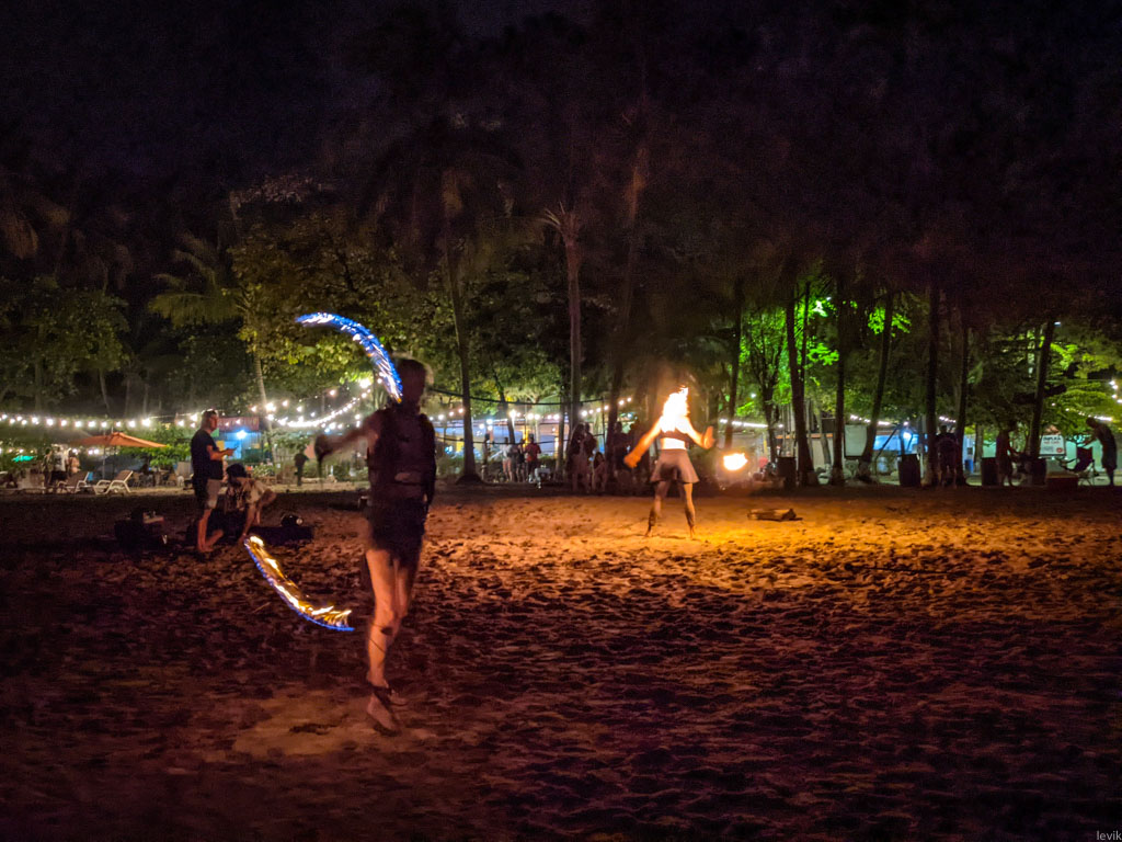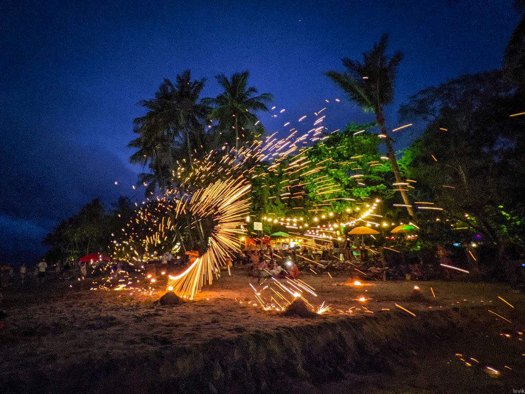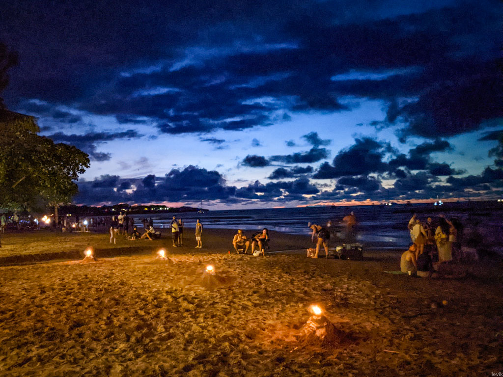 2. Когда стемнело, ребята возле каждого пляжного ресторана выстроили периметры из вулкано-образных кучек песка, на макушке которых играло пламя.