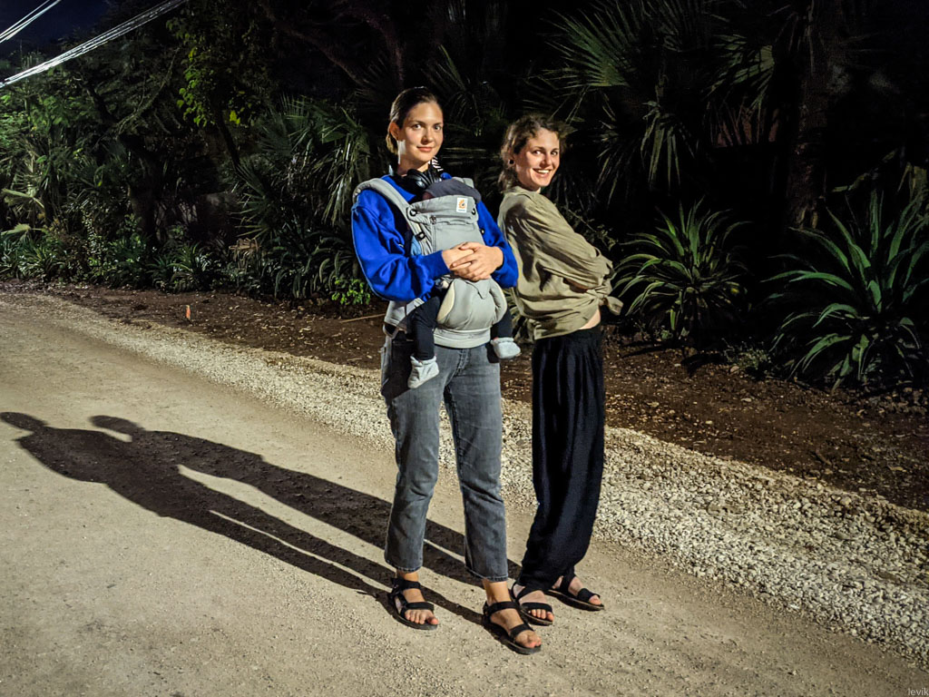 5. После ужина мы немного погуляли, а потом пошли домой. Там уложили Айю спать на несколько часов, пока дело не подошло к полуночи. Тогда мы с Тоней и Варей аккуратно перегрузили девочку в слинг (она конечно проснулась, но ради Нового Года мы решили, что можно на часик поступиться её сном).
