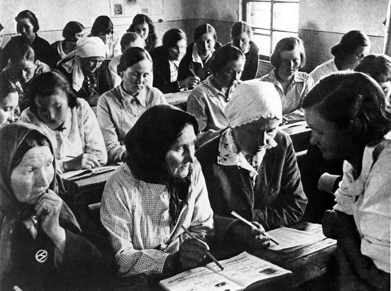 Развёрнутая большевиками кампания ликбеза обучала массы используя новую, упрощённую орфографию
