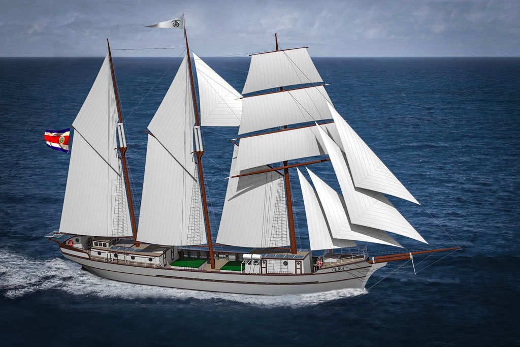 Современная трёхмачтовая шхуна будет носить имя Сейба - это название дерева, священного для многих народов Центральной Америки. Вдохновением для этого конкретного судна стала финская торговая шхуна Ингрид.