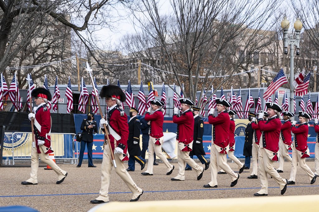 Возвращаясь в центр Вашингтона, машина нового президента приняла участие в небольшом параде - его возглавляли солдаты в форме Войны за Независимость.