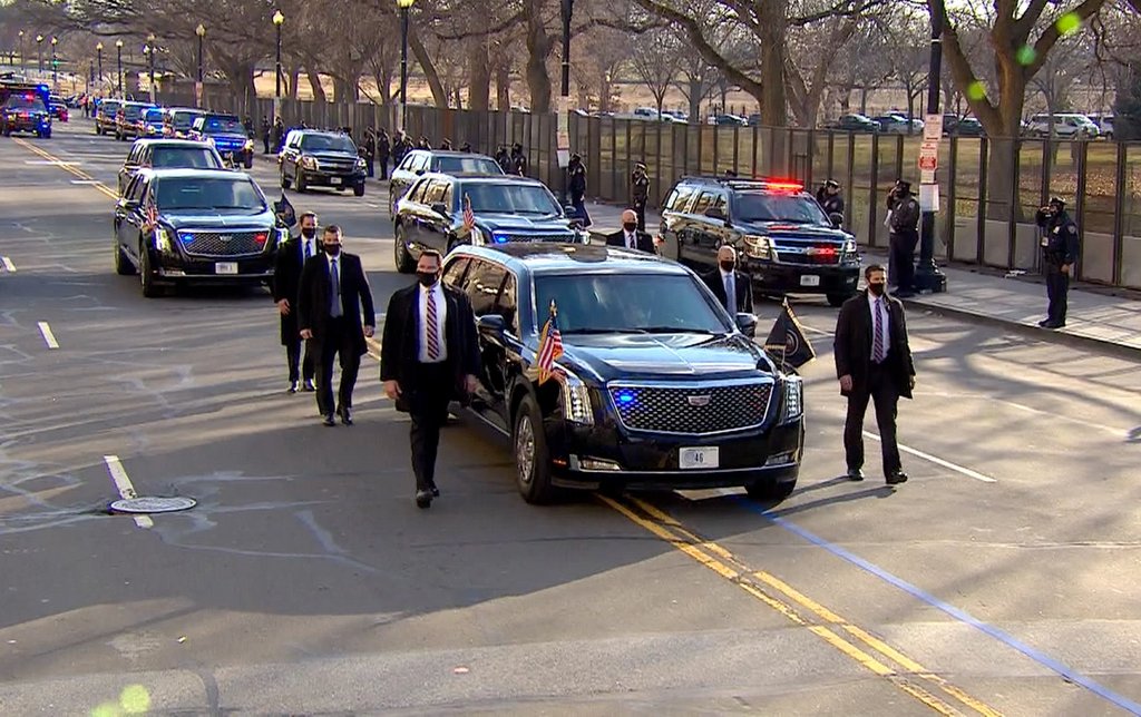 Бронированный лимузин Байдена ехал по городу медленно, его сопровождали шесть охранников - это обычная практика для передвижения любого президента.