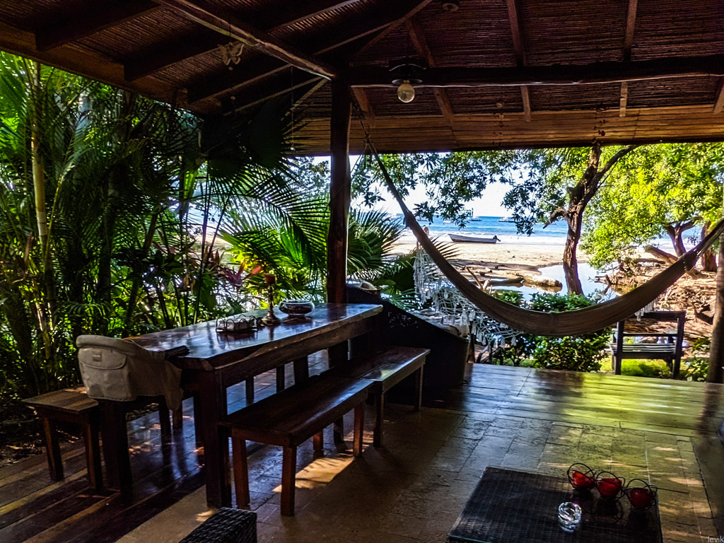 Айя сейчас учится есть за одним столом вместе с нами. Это нелегко, и требует больших хлопот, зато выглядит невероятно мило со стороны, когда она хватает руками разную еду, и тянет её в рот. Нам было важно, чтоб она продолжала пробовать разную новую еду и в поездке, так что, зная, что мы будем в основном снимать дома и квартиры с кухнями, мы решили купить вот такой стульчик: Inglesina Fast Table Chair.Он крепится к практически любому столу или прилавку - по крайней мере, за всю поездку мы не нашли поверхности, куда его нельзя было бы присобачить. Вот он прикручен к столу на террасе нашей виллы в Тамариндо. Здесь Айя завтракала с отличным видом на пляж.