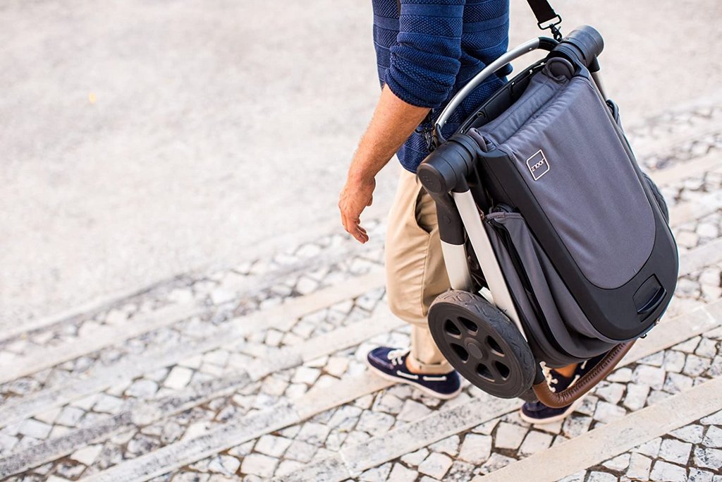 Коляска удобная, манёвренная, и крепкая. В сложенном виде без проблем помещается в любой багажник, или даже на заднее сидение машины. Производитель рекламирует как здорово её носить на ремне через плечо (ремень действительно удобный), но по-моему она слишком тяжёлая для того, чтоб так долго прогуливаться.